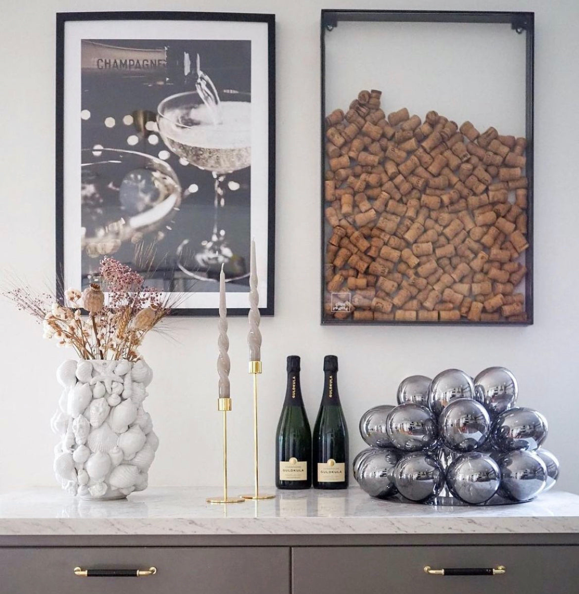 Wir haben lange nach einem Gemälde oder ähnlichem gesucht, das wir über dem Sektkühlschrank anbringen können. Wir waren kurz davor, einen kleineren Schreibtisch zu bestellen. Aber dann habe ich diesen köstlichen Rahmen von Corkframes geklaut. Es ist stattdessen so gut geworden! Es ist auch echtes Glas statt Plastik, wie es heutzutage üblich ist. Wenn Sie also zu Hause nach etwas mit Champagner-Thema gesucht haben, können Sie aufhören zu suchen.